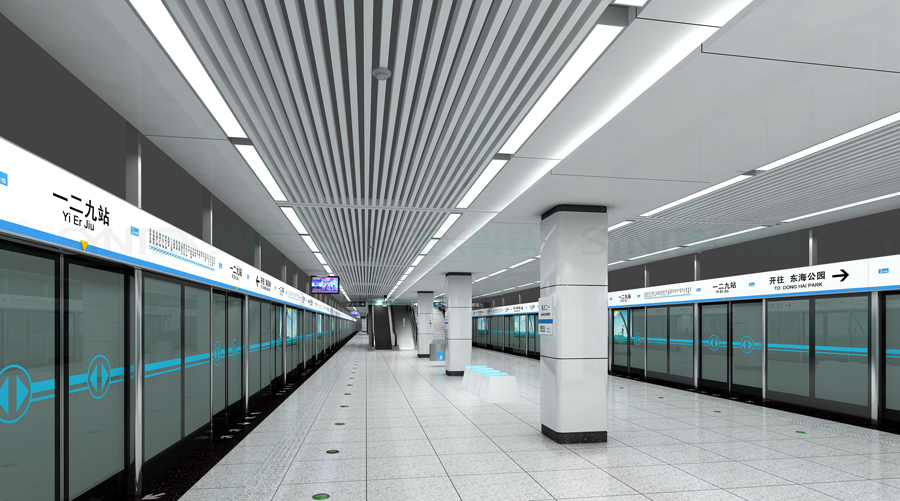 大连地铁一二九站站台——整体向日葵视频官网污APP下载钢制向日葵视频在线APP下载包柱处理、钢制天花板系统处理